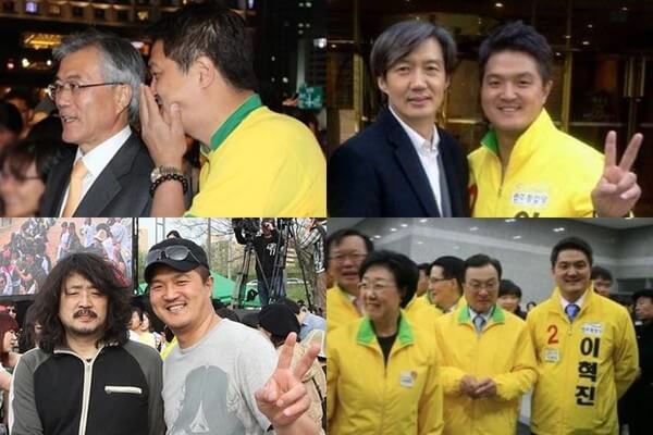 이혁진과 친문 인사들이 사진 찍은 것이 많습니다. 여기 등장하는 사람들을 주목해주세요. 일단 문재인 캠프에서 금융정책 특보를 했던 사람입니다. 조국과 팔짱을 하면서 사진을 찍기도 했습니다.